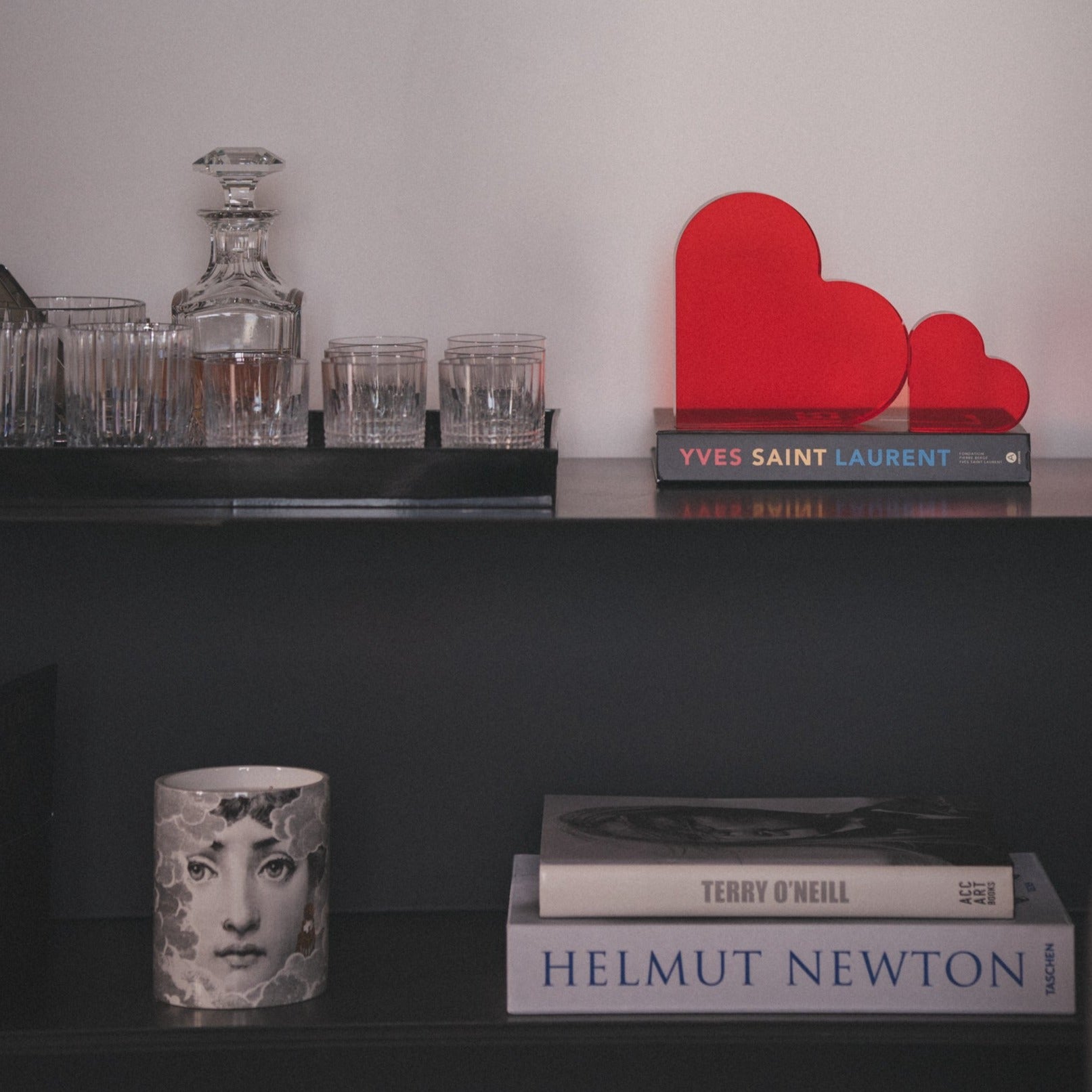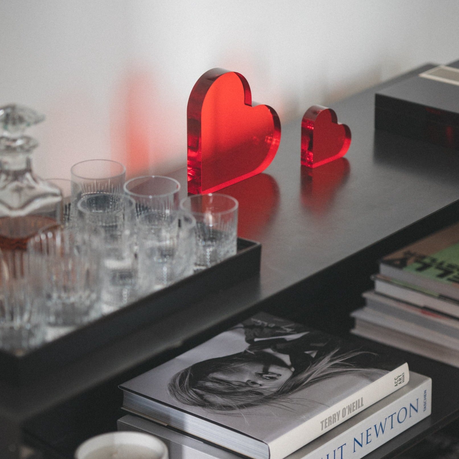 The Romeo & Juliet acrylic hearts are the newest table top accessory from the SN x Mademoiselle Jules home goods collaboration. Made of the highest quality acrylic & comes as a set of two; our red lucite hearts add a little fun and colour to your home.